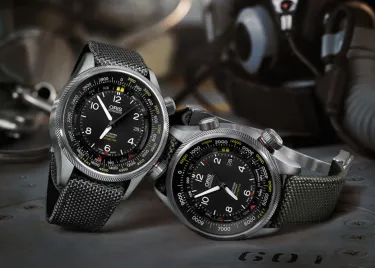 Wenn Ihre Vorstellung von Abenteuer darin besteht, sich in die Lüfte zu erheben, könnte die Oris Big Crown Propilot die richtige Uhr für Sie sein. Sie ist die erste Automatikuhr der Welt, die mit einem mechanischen Höhenmesser ausgestattet ist. So können Sie Ihre Höhe mit einem Blick überprüfen, während Sie durch den Himmel gleiten. Dieses Modell kommt in einem 47 Millimeter Edelstahlgehäuse und ist mit einem Nylonarmband ausgestattet.