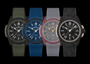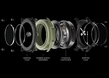 Nach zweijähriger Zusammenarbeit mit Jean-Claude Biver und Schweizer Lieferanten entstanden vier farbenfrohe, stossfeste, leichte und zu 100 % schweizerische Uhren aus einem gänzlich neuen Material. Aber was ist NORTEQ? Ein innovatives Verbundprodukt aus Kohlefaser, das 6-mal leichter als Stahl und 3,5-mal leichter als Titan ist und in verschiedenen Farben daherkommt!