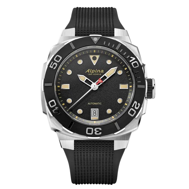 Diese Seastrong Diver Extreme Automatic verfügt über ein Gehäuse mit den Maßen 39 x 40,50 mm und ein Kautschukarmband. Das Automatikwerk hat eine Gangreserve von 38 Stunden. Die Uhr zeigt die Stunden, Minuten, Sekunden und das Datum bei 6 Uhr an.