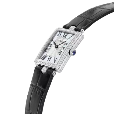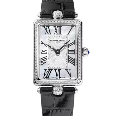 Die klassische Art déco Carrée mit ihrem eleganten, rechteckigen, polierten Gehäuse und den geriffelten Gehäusebändern bietet die ultimative Eleganz, indem sie zeitlose Raffinesse in die Kollektion von Frederique Constant bringt. Inspiriert von den kultivierten und modischen Frauen der späten 1920er Jahre, hebt sich dieses Design vom Mainstream ab und präsentiert einen anderen, klassischen Stil.