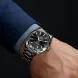 Das schwarze Zifferblatt zeichnet sich durch ein horizontales „Teak“-Dekor aus, das sich an den hölzernen Deckplanken von Luxus-Segeljachten inspiriert. Das Zifferblatt verfügt außerdem über ein Datumsfenster bei 6 Uhr und die rhodinierten Zeiger und Indizes sind mit weißer Super-LumiNova gefüllt.