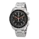 Dieses Speedmaster Racing Master Chronometer-Modell kennzeichnet ein 44,25-mm-Gehäuse aus Edelstahl mit Edelstahlarmband und einem Lünettenring aus schwarzer Keramik, der mit der berühmten Tachymeterskala mit orangefarbenem Schriftzug und Ziffern aus Liquidmetal™ versehen ist. Auf dem mattschwarzen Zifferblatt findet sich ein markanter Minutenring im „Racing“-Stil, dem die Uhr ihren Namen verdankt. Auch gibt es zwei Hilfszifferblätter mit geschwärzten applizierten Ringen sowie ein Datumsfenster bei 6 Uhr, das farblich auf das Zifferblatt abgestimmt ist. Während die Zeiger orange und weiß lackierte Elemente kombinieren, bestehen die Indizes mit Pfeilspitzen aus 18 K Weißgold mit weißer Super-LumiNova. Angetrieben wird die Uhr von OMEGAs Co-Axial Master Chronometer 9900, das vom METAS nach dem höchsten Branchenstandard zertifiziert wurde.