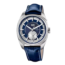 Die LAB Peripheral hat ein 42 x 42 mm großes, bis 5ATM wasserdichtes Edelstahlgehäuse in Kissenform und ist je nach Ausführung mit einer grauen PVD-Beschichtung versehen. Große Aufmerksamkeit wurde der Architektur des Zifferblatts gewidmet, das sich durch eine originelle Konstruktion auszeichnet. Der dreidimensionale Effekt wird durch die mehrstufige Struktur erreicht, die für Tiefe sorgt. Der Star dieses neuen Zeitmessers ist das Manufakturwerk Kaliber P421 mit einer frontalen peripheren Schwungmasse, die durch den Stundenring mit graviertem Rillendekor sichtbar ist. Das große Datumsfenster befindet sich bei 12 Uhr, der Zähler der zweiten Zeitzone bei 6 Uhr mit einer runden Öffnung zwischen 10 und 11 Uhr für die Tag-/Nachtanzeige.