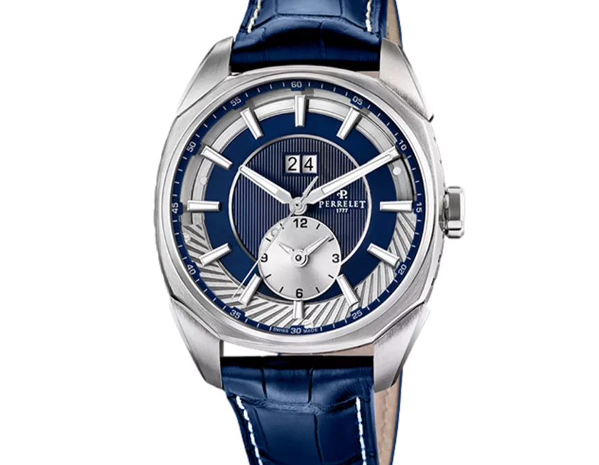 Eine innovative ästhetische und technologische Neuausrichtung, die einen neuen Zeitmesser hervorbringt. Geleitet von Kreativität und dem Wunsch, neue technologische Grenzen in der Uhrmacherei zu erkunden, hat das technische Team von Perrelet die neue LAB PERIPHERAL Dual Time Big Date entwickelt. Dieser Zeitmesser bleibt den Werten und der DNA der Marke mit ihrer Signatur "Luxus in Bewegung" treu. Diese neueste Kreation bietet eine diskrete und raffinierte Animation auf dem Zifferblatt und begrüßt einen neuen und modernen Casual-Chic-Stil in den Kollektionen von Perrelet.