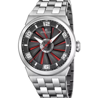 Die Turbinensammlung feiert 2019 ihr 10-jähriges Bestehen. Zum Gedenken an diesen wichtigen Meilenstein bringt Perrelet die TURBINE EVO mit einem komplett überarbeiteten Design und einem neuen hauseigenen Uhrwerk mit dem Kaliber P-331-MH heraus. Die Turbine EVO ist in einem neuen, sportlich-schicken Gehäuse untergebracht, das nun ein Edelstahlarmband bietet. Zum ersten Mal in ihrer zehnjährigen Geschichte sind alle Uhrwerke, die diese Kollektion ausstatten, COSC-zertifiziert, was nach einer Reihe von Tests die hohe Präzision der Zeitmessung bezeugt. Funktionen zentrale Zeiger, die Stunden, Minuten und Sekunden anzeigen; 5 ATM; schwarzes, rotes Unterzifferblatt und Faltschließe. Eigenes Automatikwerk Kaliber P-331-MH, 42 Stunden Gangreserve.