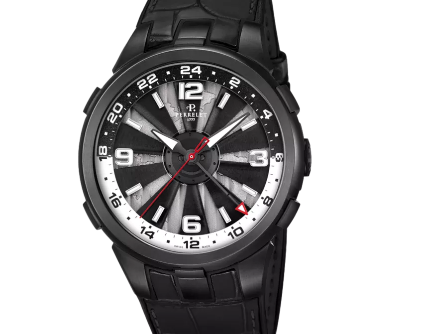 Mit der Turbine den Globus umkreisen - das ist der neue Traum, den Perrelet mit der Kollektion Turbine GMT heraufbeschwört. Im Gleichschritt mit den Bewegungen des Handgelenks dreht sich die zehnblättrige Turbine frei über dem Zifferblatt und gibt den Blick auf eine Weltkugel frei, die in ein Genfer Dekor eingraviert ist. Ausgestattet mit einer 24-Stunden-Doppelzeitfunktion verbindet die Kollektion Turbine GMT einmal mehr eine uhrmacherische Komplikation mit dem ikonischen Turbinenkonzept und beweist einmal mehr, dass sich ihre Star-Kollektion für alle möglichen Variationen eignet.