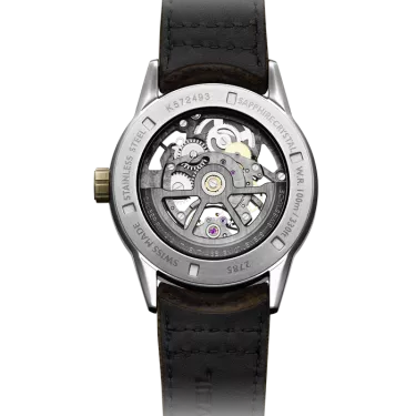 Jede Uhr mit 42-mm-Edelstahlgehäuse und massiver Bronzelünette verfügt über eine einzigartige Patina mit strahlendem Glanz. Dieses neue Design mit komplett offenem Zifferblatt und sichtbarer Unruh auf der Sechs-Uhr-Position verleiht dem Modell noch mehr Transparenz und Tiefe. Es gewährt einen Blick auf das exklusive In-House-Uhrwerk und unterstreicht ein reichhaltiges Know-how in der Uhrmacherei.