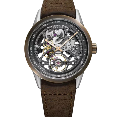 Die neueste Freelancer Kaliber RW1212 Skelettuhr von RAYMOND WEIL kombiniert Materialien aus der Vergangenheit mit der präzisen Schweizer Handwerkskunst von heute.