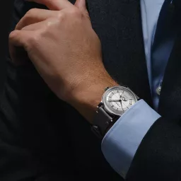 Das silberfarbene Zifferblatt liegt unter einem Vintage-inspirierten Saphirglas in Glass-Box-Bauweise und wurde in höchstem Maße veredelt. Die Stunden und Minuten werden durch silberfarbene, mit Super-LumiNova®-beschichtete Zeiger eloquent vermittelt. Das Sektorzifferblatt präsentiert die Stunden, Minuten und Sekunden auf getrennten Spuren und verbessert so die Ablesbarkeit.