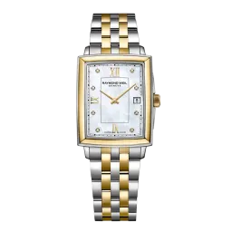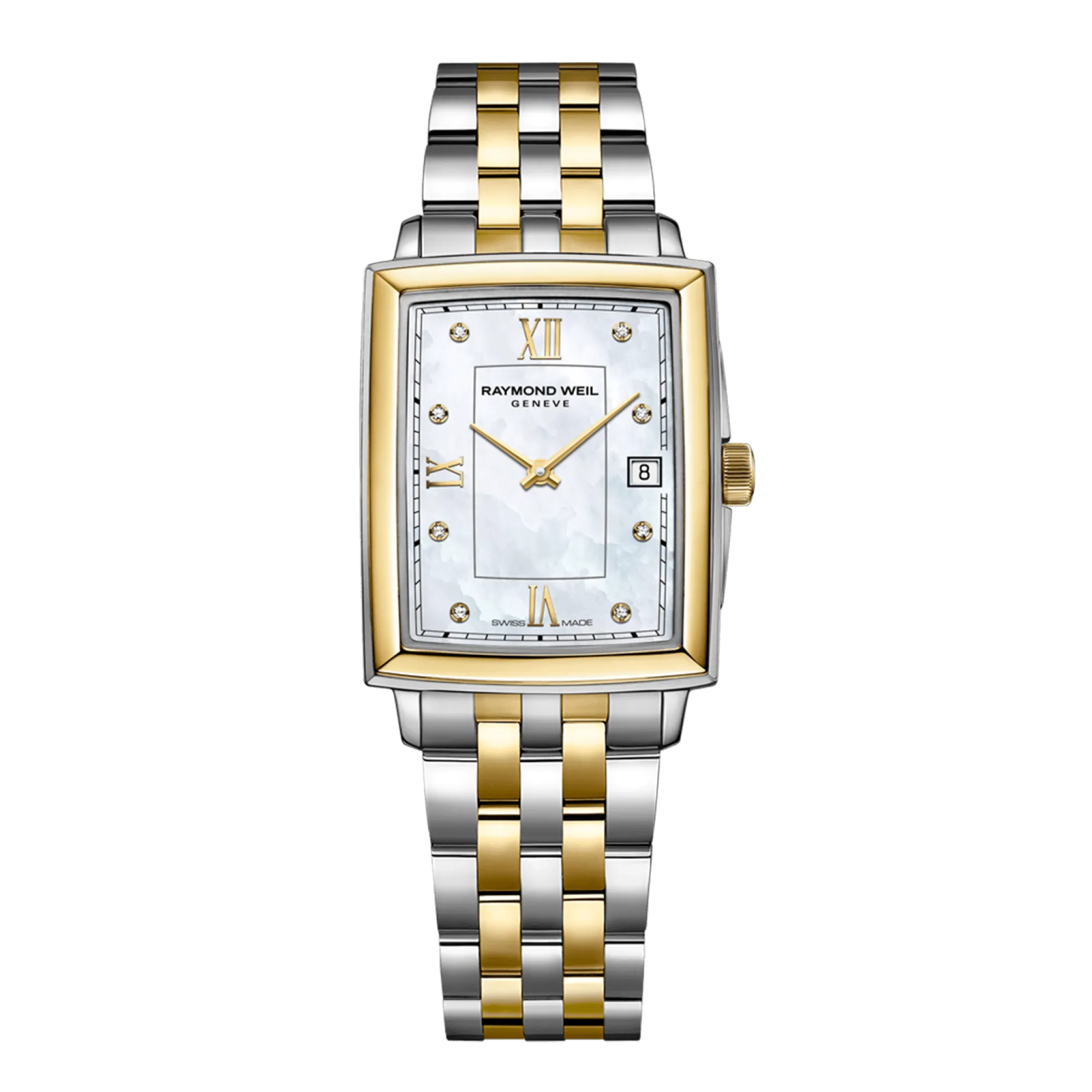 Uhren mit rechteckigem Zifferblatt waren während der Art-Deco-Bewegung der 1920er und 1930er besonders beliebt und sorgen jetzt für einen schicken, neuen Trend. RAYMOND WEIL präsentiert dieses Design als Teil der zeitlosen und beliebten Toccata-Kollektion für Damen.