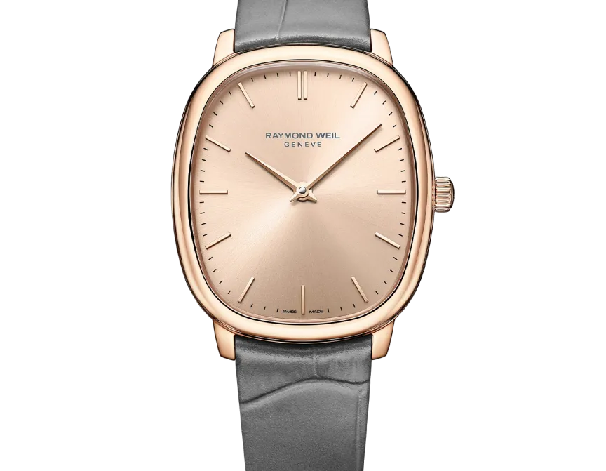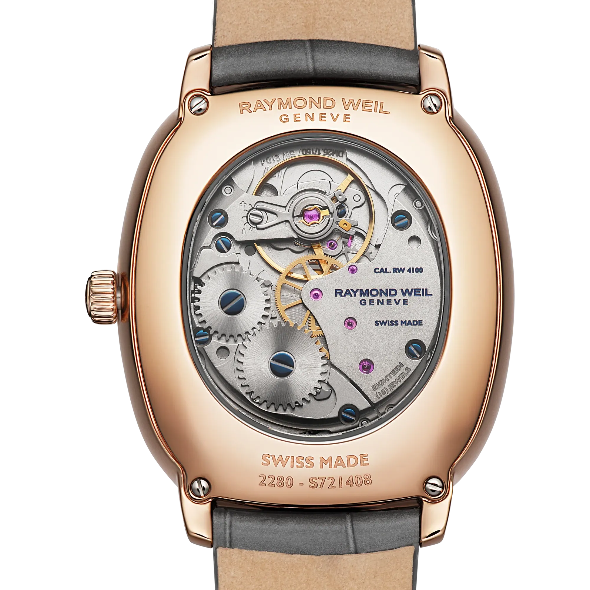 Die Toccata-Kollektion verbindet Vergangenheit und Gegenwart und verkörpert das fast fünf Jahrzehnte lange Savoir-faire von RAYMOND WEIL in der Uhrmacherkunst. Das flache ovale Gehäuse aus poliertem Edelstahl mit Roségold-PVD-Beschichtung beherbergt das mechanische Uhrwerk RW4100 mit Handaufzug. Eine raffinierte Hommage an traditionelle Schweizer Handwerkskunst mit einer Gangreserve von 45 Stunden.