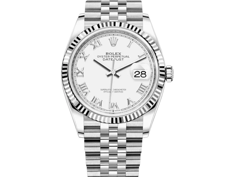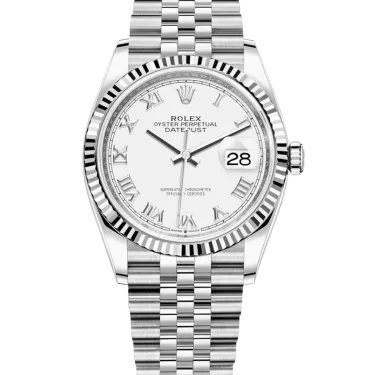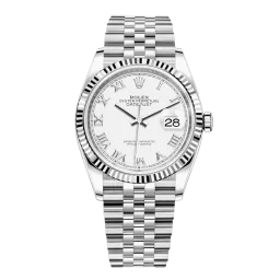 Rolex Datejust 126234 Uhrwerk: Automatik Gehäusegröße: 36 mm Gehäusematerial: Stahl und Weißgold Armbandmaterial: Stahl (Jubilee) Zifferblatt: Weiße römische Ziffern Wasserdichtigkeit: 100 Meter