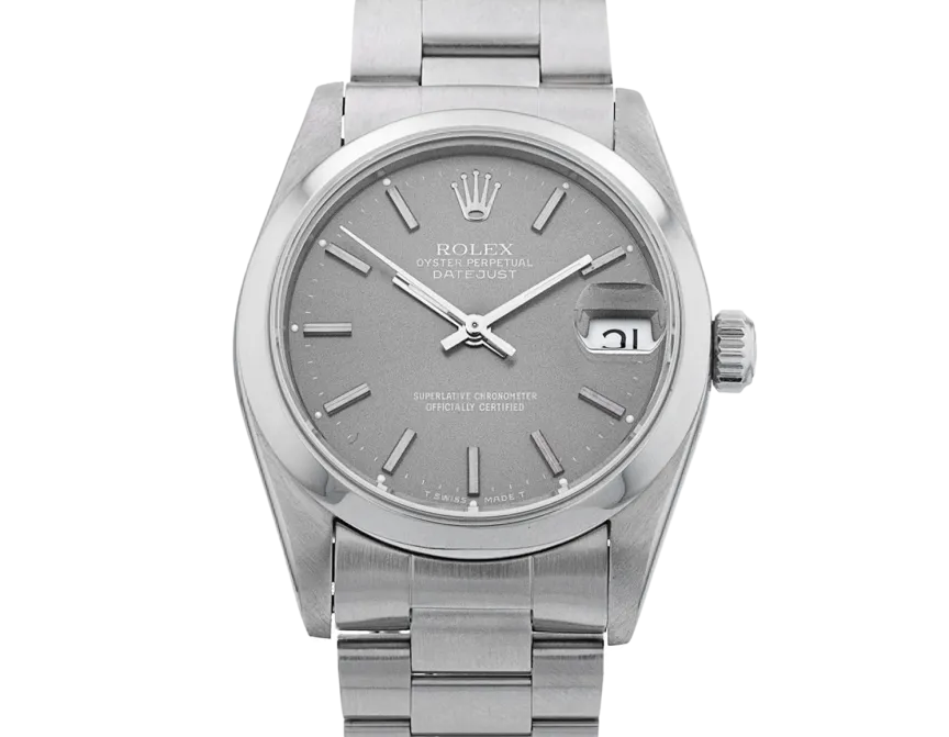 Rolex Mid-Size Datejust 68240 Uhrwerk: Automatik Gehäusegröße: 31 mm Gehäusematerial: Stahl Armbandmaterial: Stahl (Oyster) Zifferblatt: Grau, Baton Wasserdichtigkeit: 100 Meter