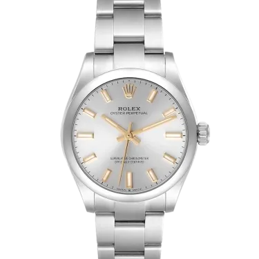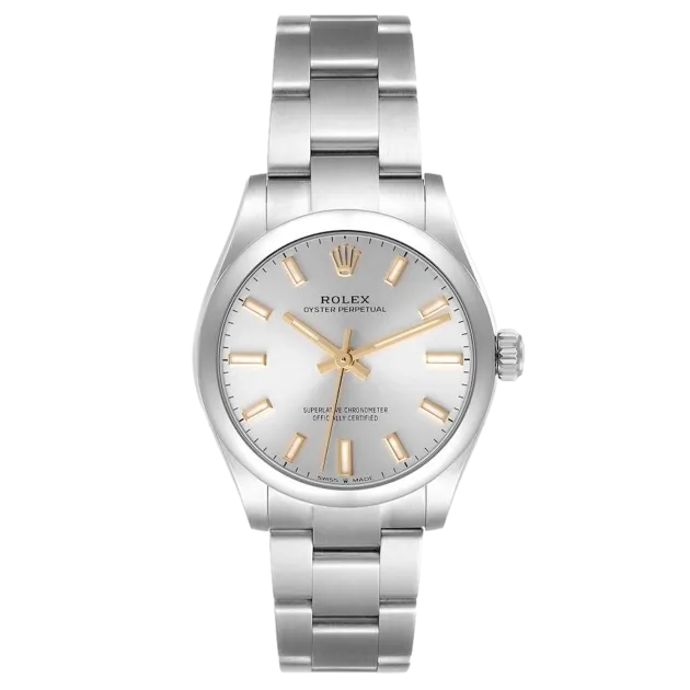Rolex Oyster Perpetual 277200 Uhrwerk: Automatik Gehäusegröße: 31 mm Gehäusematerial: Stahl Armbandmaterial: Stahl (Oyster) Zifferblatt: Silber, Stabindexe Wasserdichtigkeit: 100 Meter