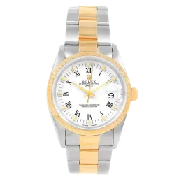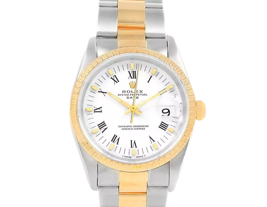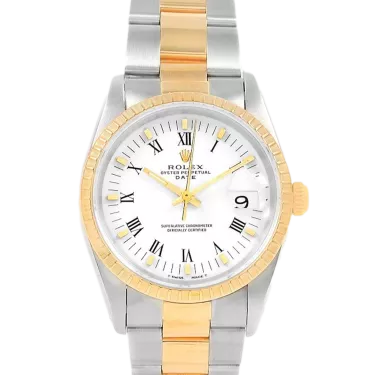 Rolex Oyster Perpetual Date 15223 Uhrwerk : Automatik Gehäusegröße : 34mm Gehäusematerial : Stahl & Gelbgold Armbandmaterial : Stahl & Gelbgold (Oyster) Zifferblatttyp : Champagne Baton Wasserdichtigkeit : 100 Meter