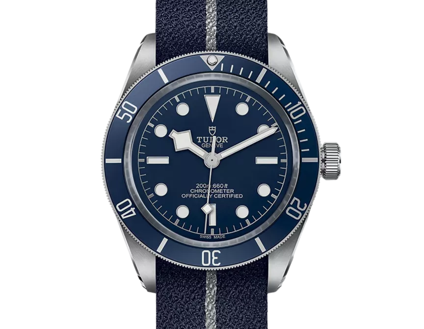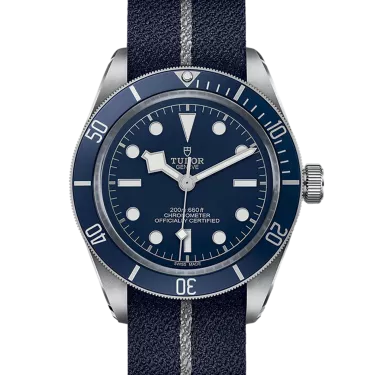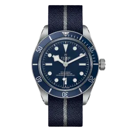 Tudor Black Bay 58 M79030B-0003 Uhrwerk: Automatik Gehäusegröße: 39 mm Gehäusematerial: Stahl Armbandmaterial: Stoff – Blau Zifferblatt: Blau Wasserdichtigkeit: 200 Meter
