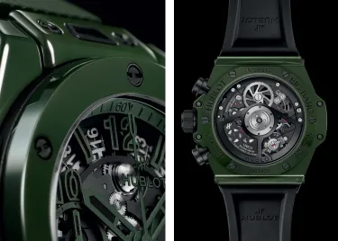Hublot continues to redefine innovation with the latest incarnation of its iconic Big Bang Unico collection: the "Green Ceramic" model. This bold timepiece emerges with a green ceramic case, shining with its color audacity and avant-garde aesthetics. Ceramic, chosen for its robustness and lightness, is here transformed into a vibrant display of vivid color, offering not only a remarkable visual spectacle but also superior scratch resistance and longevity.