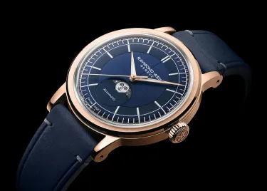 Based on the "Challenge Prize" winning watch at the GPHG 2023, the Raymond Weil Millesime Automatic Moon Phase Midnight Blue combines a sectorial and highly graphic dial with an innovatively designed moon phase, blending vintage charm and modern sophistication.