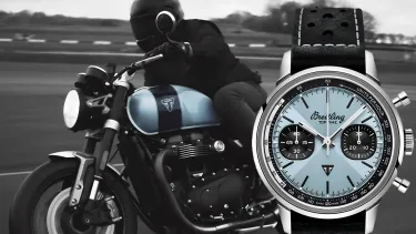 In 2022, Breitling and Triumph began their collaboration, introducing the limited-edition Triumph Speed Twin motorcycle and Top Time Triumph watch, both restricted to 270 pieces. The captivating blue paint scheme of the bike complements the ice blue of the watch. The unique design elements are shared between the watch and the bike's speedometer and tachometer, making this duo highly sought after by collectors. 🌟