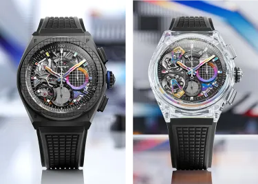 In 2021, Zenith unveils its timepiece in collaboration with contemporary artist Felipe Pantone. Following the 2020 project that adorned the manufacture's main building with art, the Defy 21 Felipe Pantone is a striking, colorful watch. Limited to 100 pieces, it houses the El Primero 21 chronograph movement, pulsating at 36,000 vibrations per hour, and features a mesmerizing bracelet.