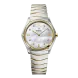 Women's EBEL Sport Classic watch, stainless steel and 18K yellow gold case Ø 33mm, white mother-of-pearl dial with applied Roman numerals and 8 diamonds (0.052ct), sapphire crystal with antireflective treatment underneath, two-tone stainless steel wave link bracelet with a folding clasp, Swiss quartz movement, water-resistant up to 5 bar.