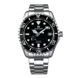 This diver’s watch is powered by Grand Seiko’s unique Spring Drive caliber, which combines the motive force of a mainspring with the high precision of a quartz watch. The watch is water resistant to a depth of 200 meters and utilizes Lumi Brite for increased visibility of the hands and index. Designed for use in some of the most unforgiving environments, the rotating bezel is removable for simple maintenance while the area around the crown has been crafted to ensure that residue from dirt, sand, or seawater can be easily washed off. With a mirror-finished case achieved through Zaratsu polishing, a lustrous rotating bezel, and multi-faceted cut indices, this watch is unmistakably Grand Seiko in its appearance, high specifications and durability.