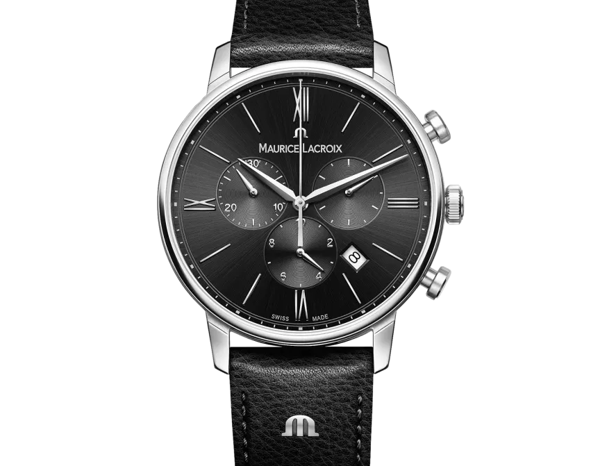 The calm, relaxed temperament of the Eliros collection provides an interesting con-trast with the notion of recording elapsed time where speed is critical and fractions of a second matter. However, the Eliros 40mm Chronograph simultaneously combines both characteristics in one harmonious composition.