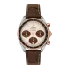 Omega Speedmaster Co-Axial Chronograph 38 mm watch. Model reference: 324.28.38.50.02.002. Stainless steel case. 18K rose gold bezel set with diamonds. Brown dial. Automatic movement. Brown alligator leather strap with white stitching and folding clasp.
