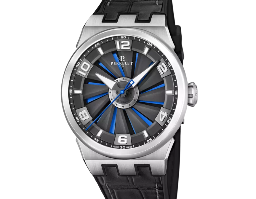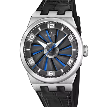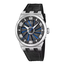 The Turbine collection celebrates its 10th anniversary in 2019. To commemorate this important landmark, Perrelet releases the TURBINE EVO with a completely overhauled design and a new in-house movement with the caliber P-331-MH. Turbine EVO is housed in a new sport-chic case which now offers a stainless steel bracelet. For the first time in its ten-year history, all the movements which equip this collection are COSC certified, testifying high precision in timekeeping after having undergone a series of tests. Functions central hands indicating hours, minutes and seconds; 5 ATM; Black, blue under-dial and Deployment buckle. In-house automatic movement Calibre P-331-MH, 42hours power reserve.