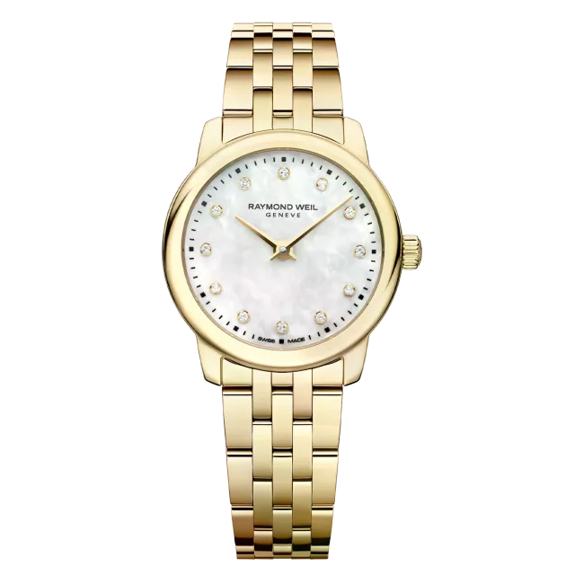 Featuring a stainless steel yellow gold PVD plated 24 mm diameter round case, a refined dial in mother-of-pearl with 12 laboratory-diamonds set indexes, this elegant toccata embraces delicate proportions with subtle sophistication. Inspired by its larger counterparts, it features a redesigned bracelet and a pure, non-date display, enhancing its harmonious aesthetic. The diamond-set dial brings a striking brilliance to the overall design. This classic ladies’ toccata demonstrates that true beauty endures over time.
