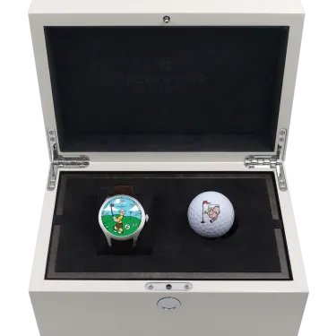 Delivered in a white wooden box adorned with an image of “The Popeye Family” (© 2022 King Features Syndicate ™ Hearst Holdings, Inc.) and an additional Golf ball.