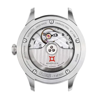 Powered by the caliber RSV-240, a proprietary patented three-complication module coupled to a manufacture movement (LJP-G100 base), combining retrograde minute, jumping hour and a 56-Hour power reserve.