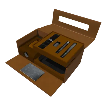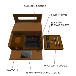 Delivered in a Luxury racing car garage toolbox-inspired watch box, with three watchmaking tools : a magnifier for examining the intricate mechanics, an anti-magnetic watchmaker screwdriver, and precise watchmaker pliers. The box holds a tray designed to store MONZA Design eyeglasses and its favorite racing car keys. Additional black rubber strap featuring a racing car tire imprint included, along with four screws for an easy change.