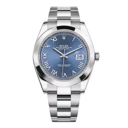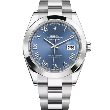 Rolex Datejust 41 126300 Movement : Automatic Case size : 41mm Case material : Steel Bracelet material : Steel (Oyster) Dial type : Blue Roman Numeral Water resistance : 100 Metres