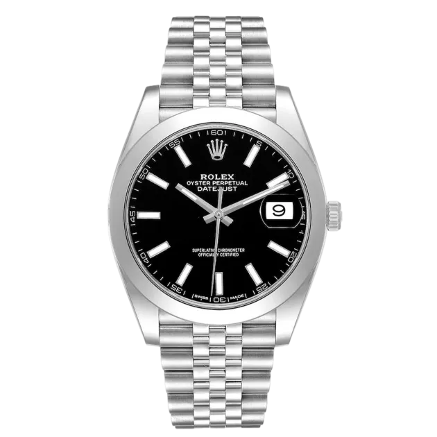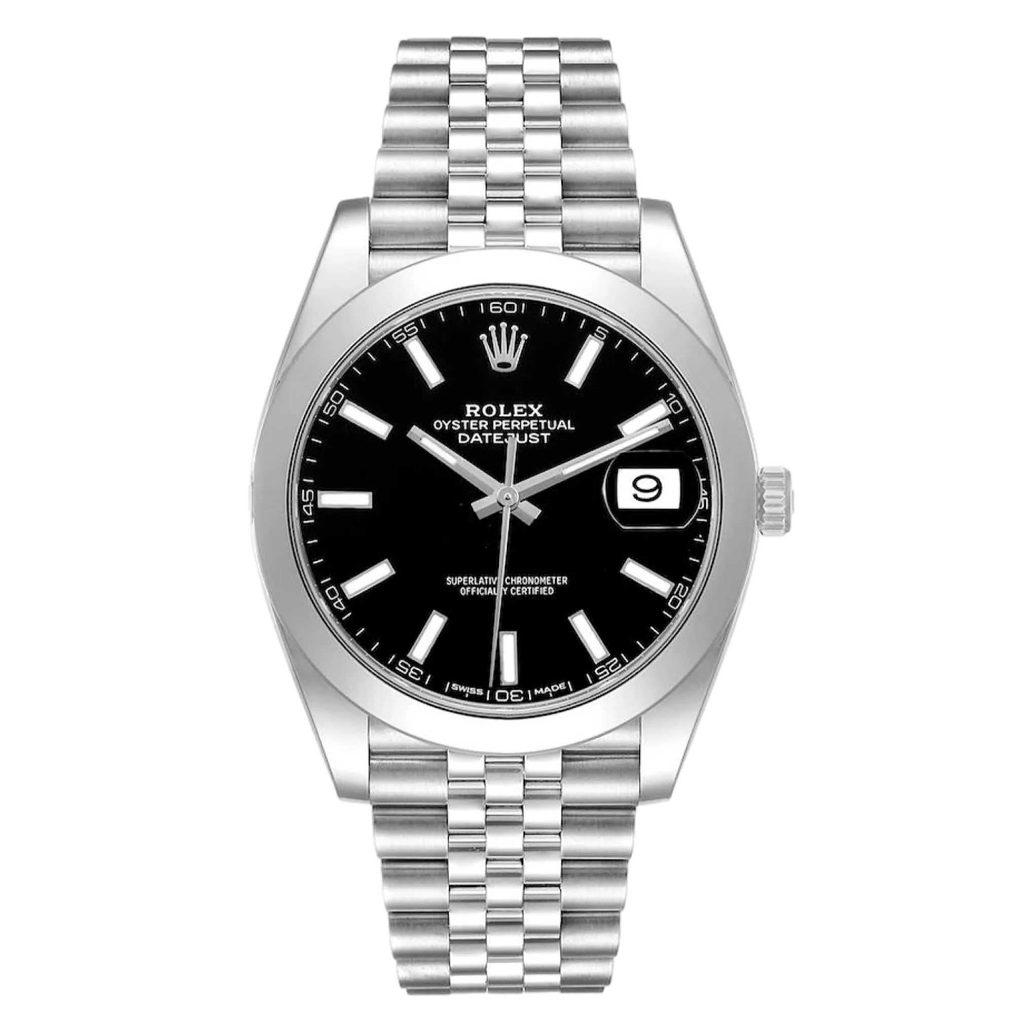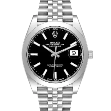 Rolex Datejust 41 126300 Movement : Automatic Case size : 41mm Case material : Steel Bracelet material : Steel (Jubilee) Dial type : Black Baton Water resistance : 100 Metres