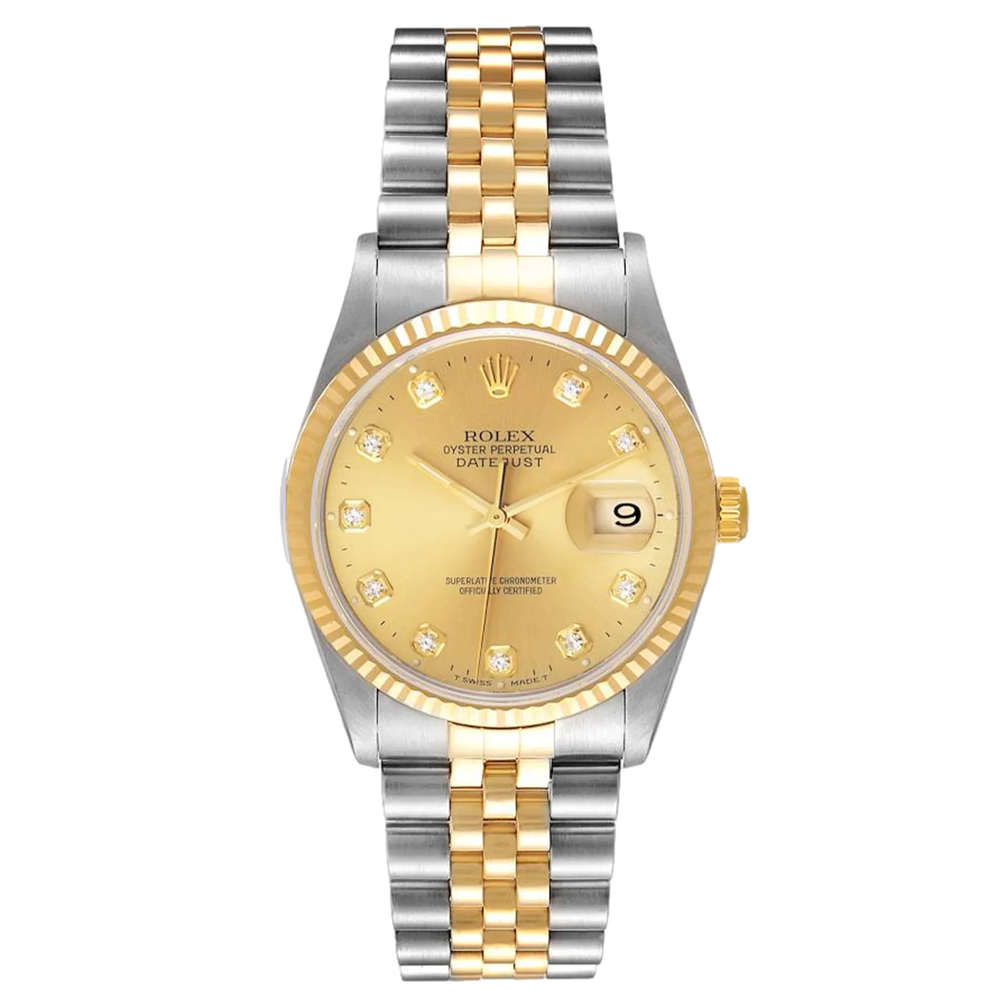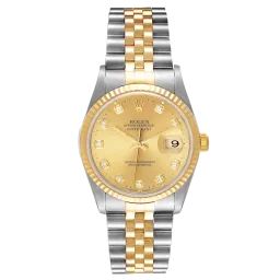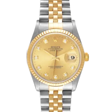 Rolex Datejust 16233 36 mm, Stainless steel/Gold case and Jubilee strap, Yellow gold bezel, Fold clasp, Champagne dial, Automatic movement, Movement/Caliber 3135, 10 ATM water resistance with original box, original papers and is in perfect working conditions. This watch has been checked, certified and carried out the water resistance test and has 2-year warranty from the date of purchase.