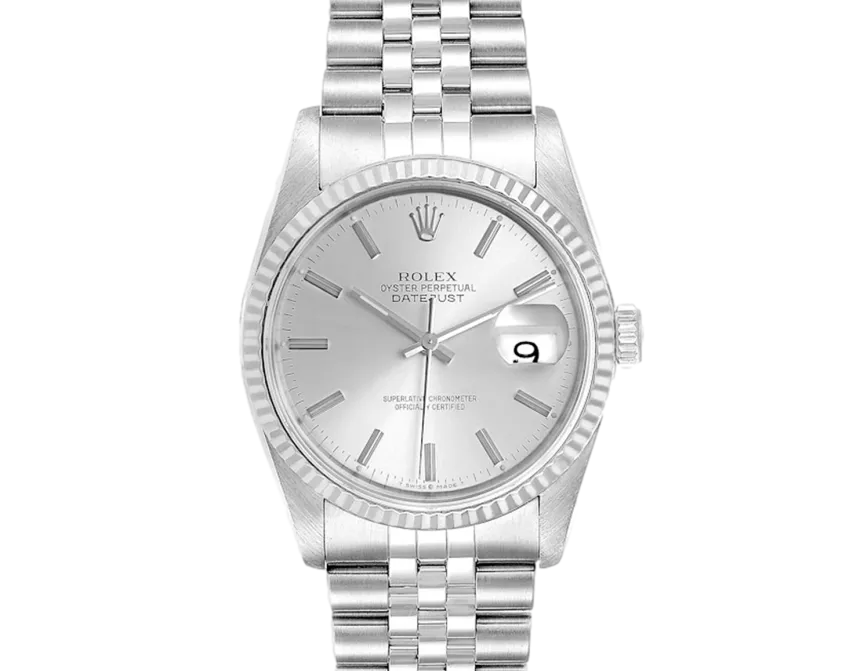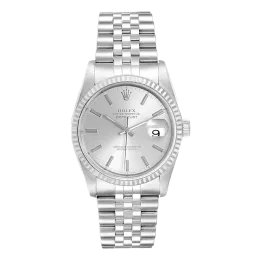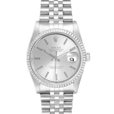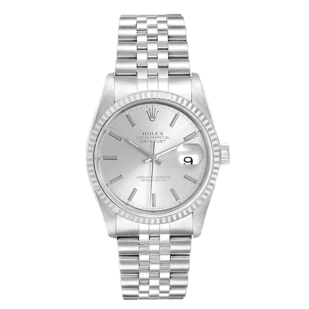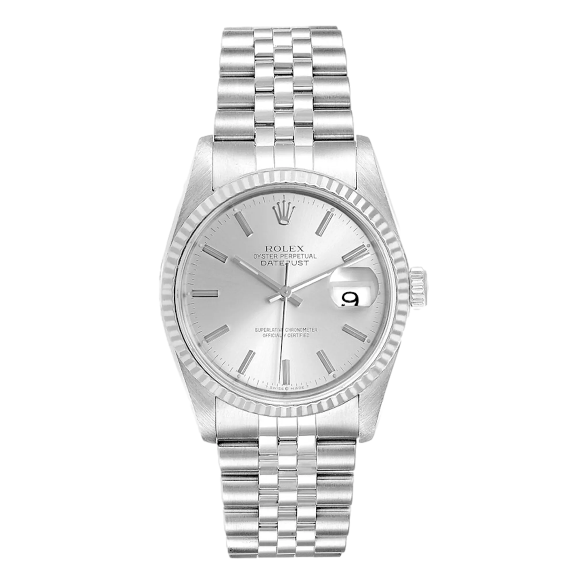 Rolex Datejust 16234 36 mm, Stainless steel case and Jubilee strap, White gold bezel, Fold clasp, Silver dial, Automatic movement, Movement/Caliber 3135, 10 ATM water resistance with original box, original papers and is in perfect working conditions. This watch has been checked, certified and carried out the water resistance test and has 2-year warranty from the date of purchase.