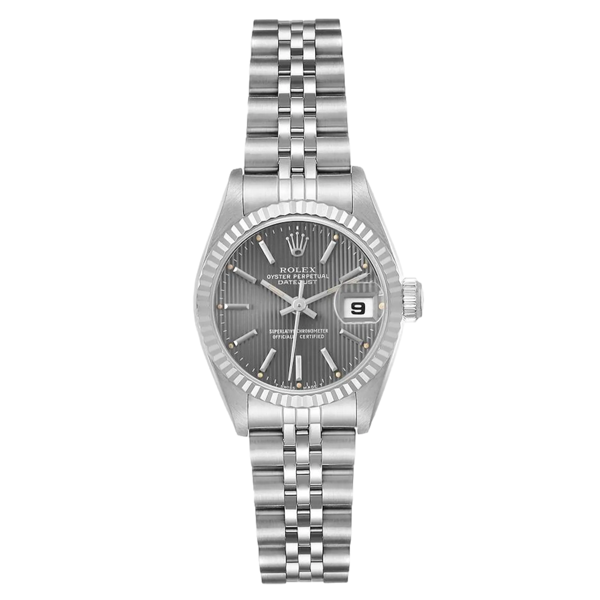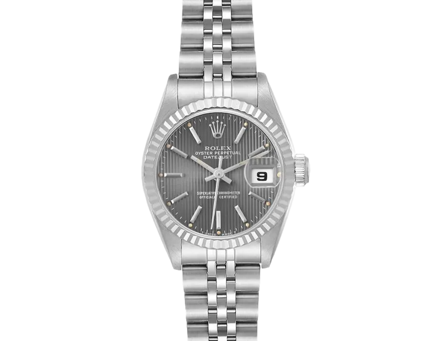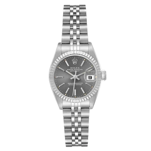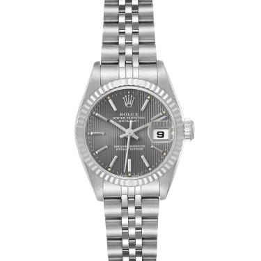 Rolex Datejust 69174 26 mm, Stainless steel case and Jubilee strap, White gold bezel, Fold clasp, Grey dial, Automatic movement, Movement/Caliber 2135, 10 ATM water resistance with original box, original papers and is in perfect working conditions. This watch has been checked, certified and carried out the water resistance test and has 2-year warranty from the date of purchase.