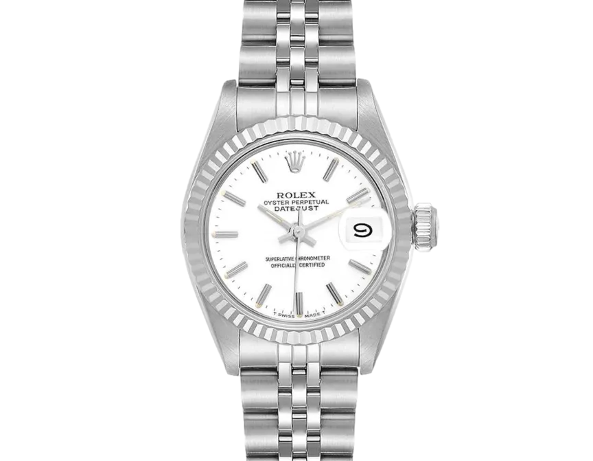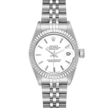 Rolex Datejust 69174 26 mm, Stainless steel case and Jubilee strap, White gold bezel, Fold clasp, White dial, Automatic movement, Movement/Caliber 2135, 10 ATM water resistance with original box, original papers and is in perfect working conditions. This watch has been checked, certified and carried out the water resistance test and has 2-year warranty from the date of purchase.