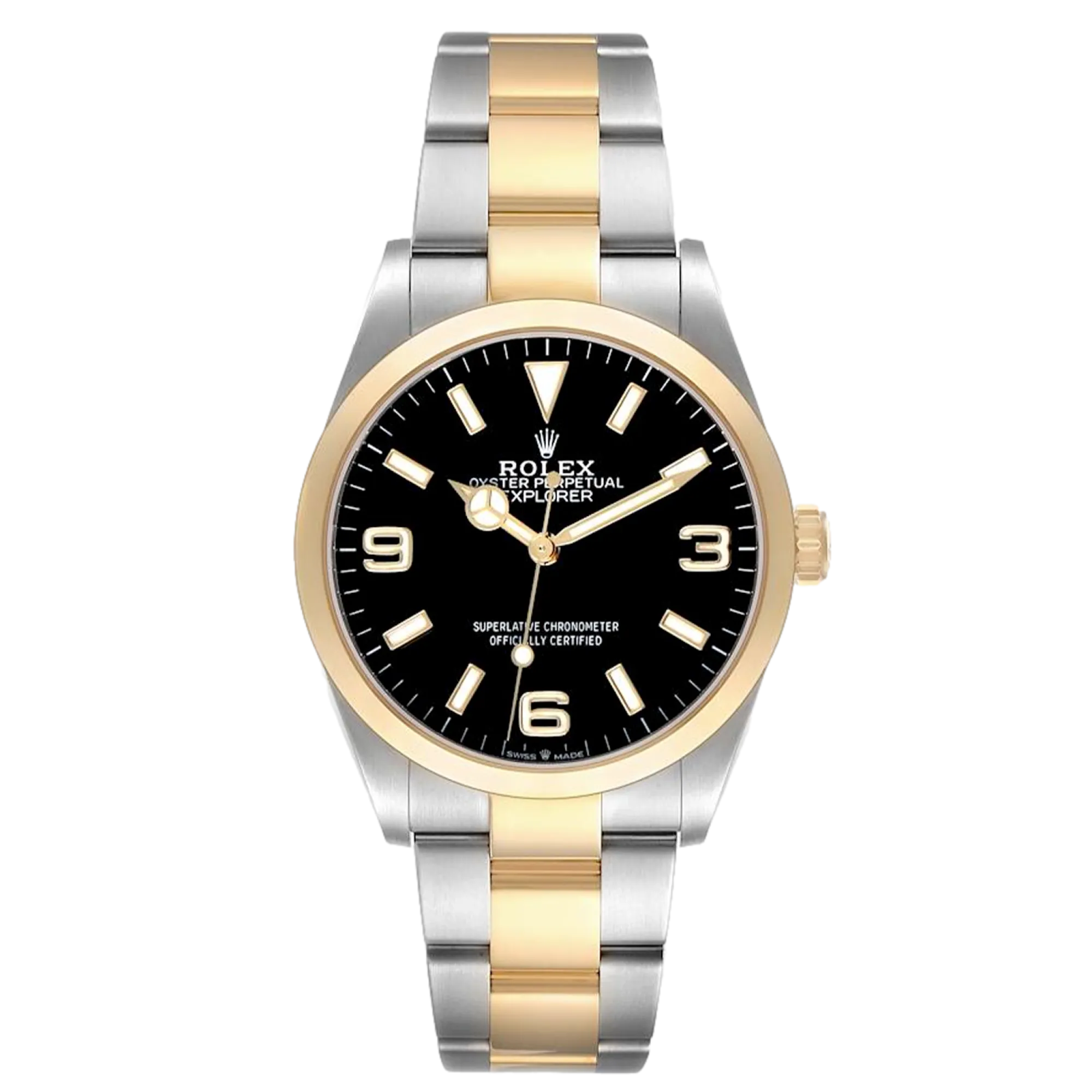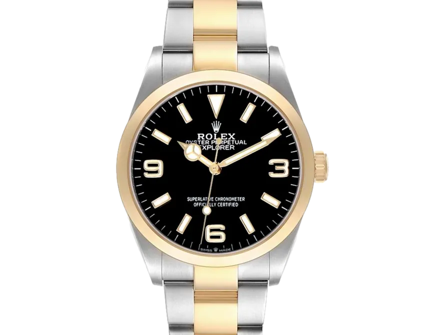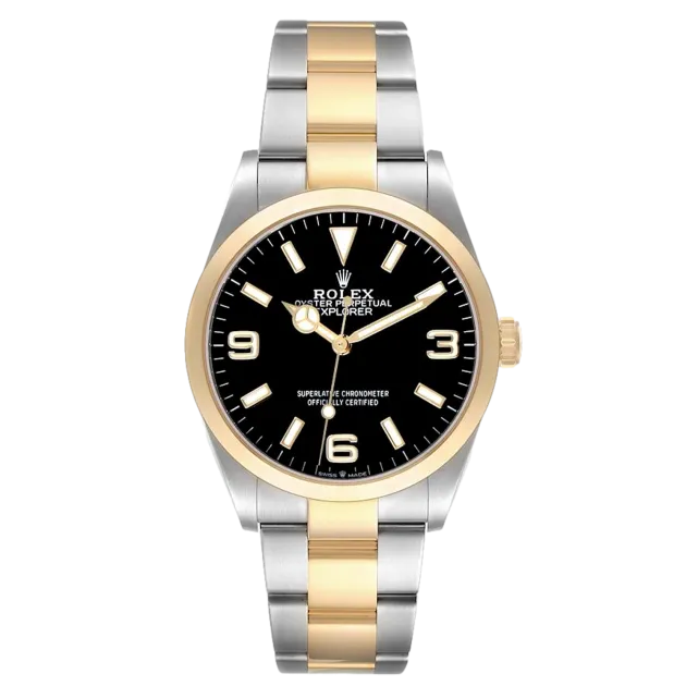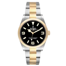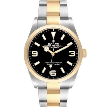 Rolex Explorer 124273 Movement : Automatic Case size : 36mm Case material : Steel & Yellow Gold Bracelet material : Steel & Yellow Gold (Oyster) Dial type : Black Quarter Arabic Water resistance : 100 Metres