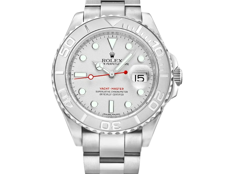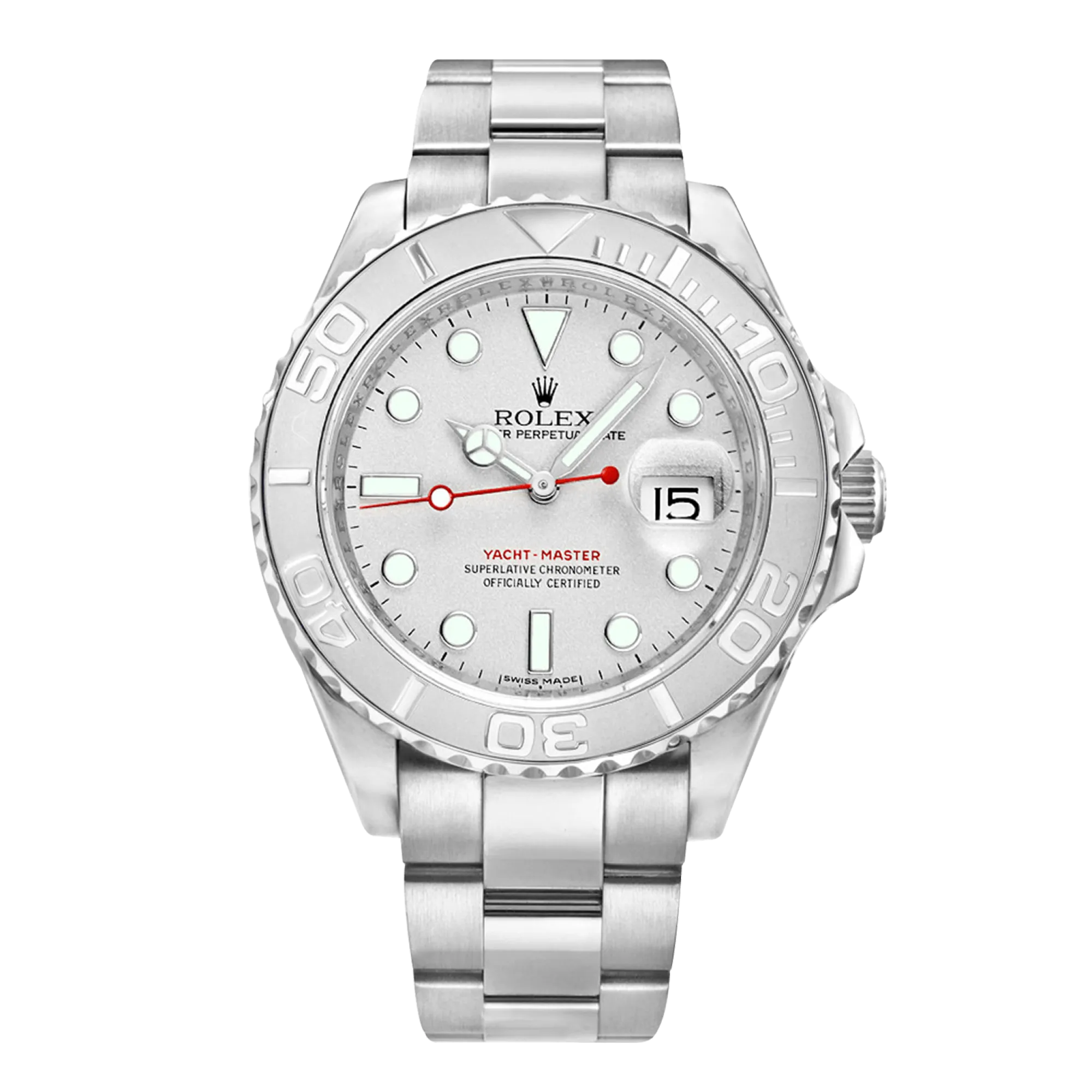Rolex Yacht-Master 16622 40 mm, Stainless steel case and oyster strap, Platinum bezel, Fold clasp, Silver dial, Automatic movement with original box, original papers and is in perfect working conditions. This watch has been checked, certified and carried out the water resistance test and has 2-year warranty from the date of purchase.