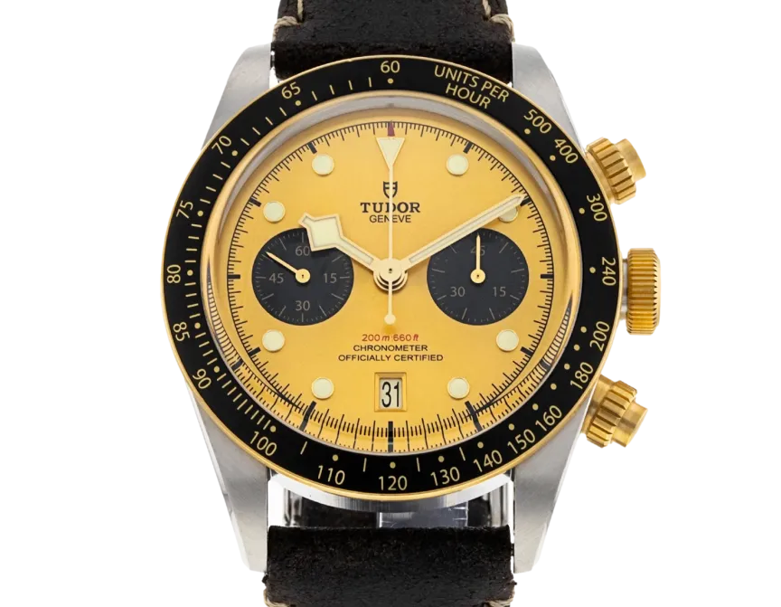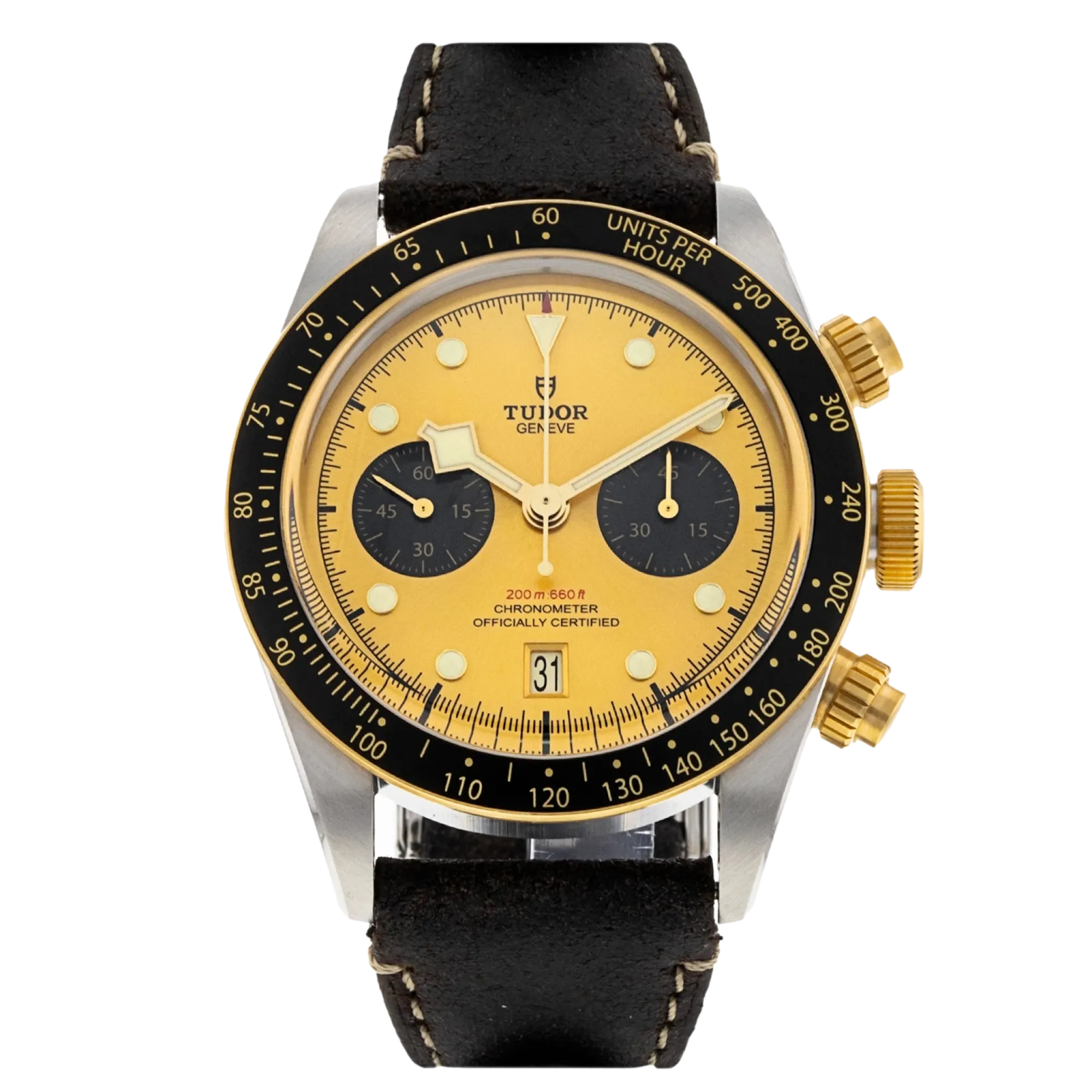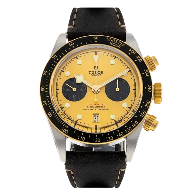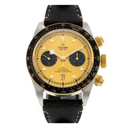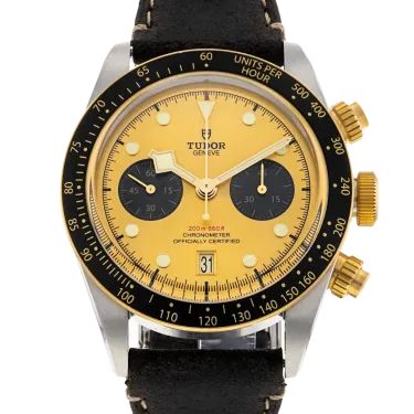 Tudor Black Bay Chrono M79363N-0008 Movement : Automatic Case size : 41mm Case material : Steel & Yellow Gold Bracelet material : Leather - Brown Dial type : Champagne Water resistance : 200 Metres