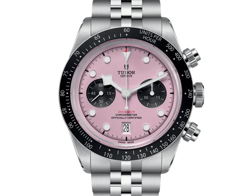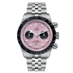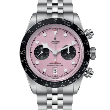 Tudor Black Bay Chrono M79360N-0019 Movement : Automatic Case size : 41mm Case material : Steel Bracelet material : Steel Dial type : Pink Water resistance : 200 Metres