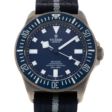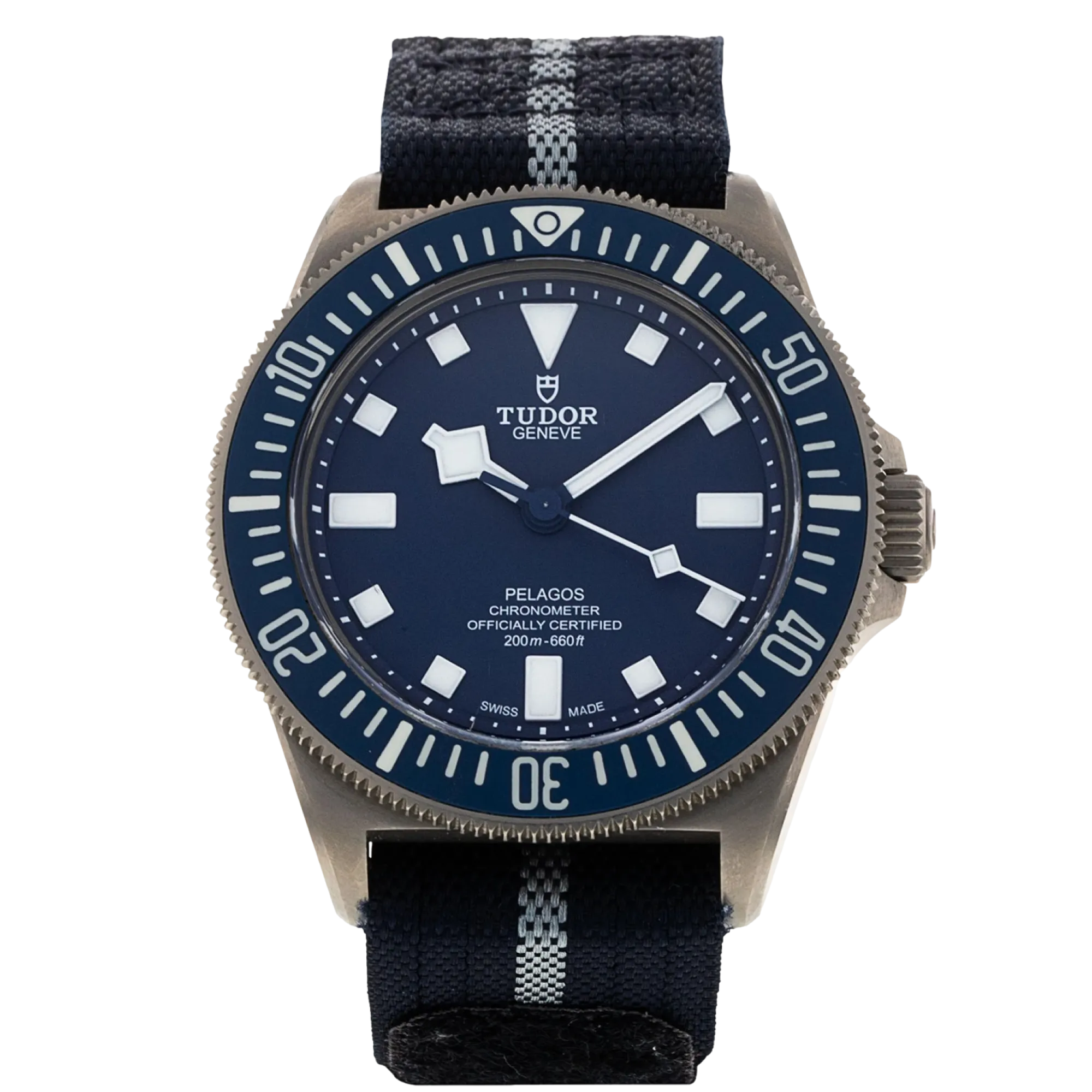 Tudor Pelagos M25707B/21-0001 Movement : Automatic Case size : 42mm Case material : Titanium Bracelet material : Fabric - Blue Dial type : Blue Water resistance : 200 Metres