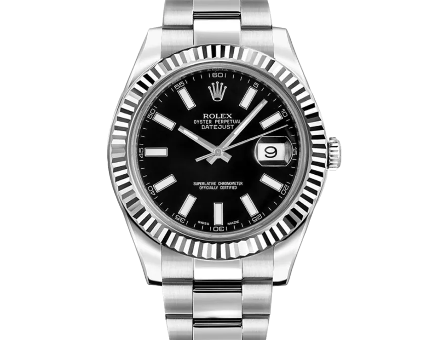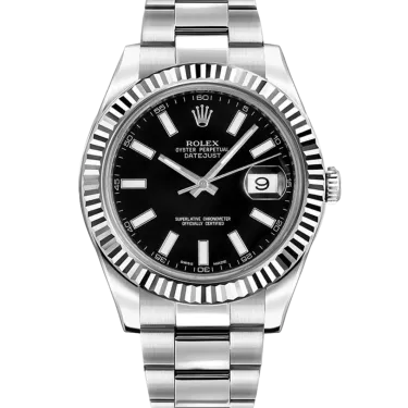 Rolex Datejust II 116334 41 mm, Stainless steel case and oyster strap, White gold bezel, Fold clasp, Black dial, Automatic movement, Movement/Caliber 3136, 10 ATM water resistance with original box, original papers and is in perfect working conditions. This watch has been checked, certified and carried out the water resistance test and has 2-year warranty from the date of purchase.