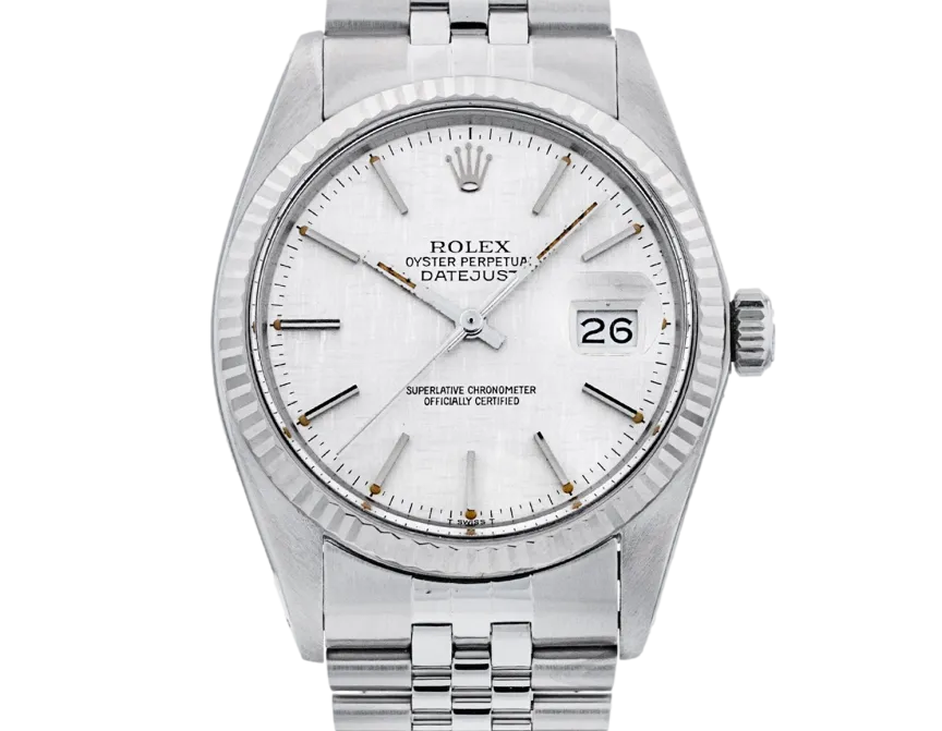 Rolex Datejust 16014 Movement : Automatic Case size : 36mm Case material : Steel & White Gold Bracelet material : Steel (Jubilee) Dial type : Baton argent