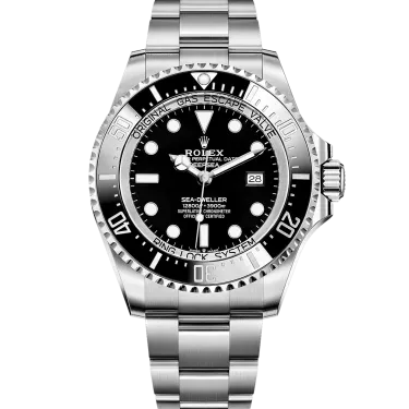 It is distinguished by its black dial and large luminescent hour-markers. Water-resistant to a depth of 1,220 metres (4,000 feet) and equipped with a 60-minute unidirectional rotating bezel, the Rolex Sea-Dweller is one of the ultra-resistant diving watches designed by Rolex for deep-sea exploration.