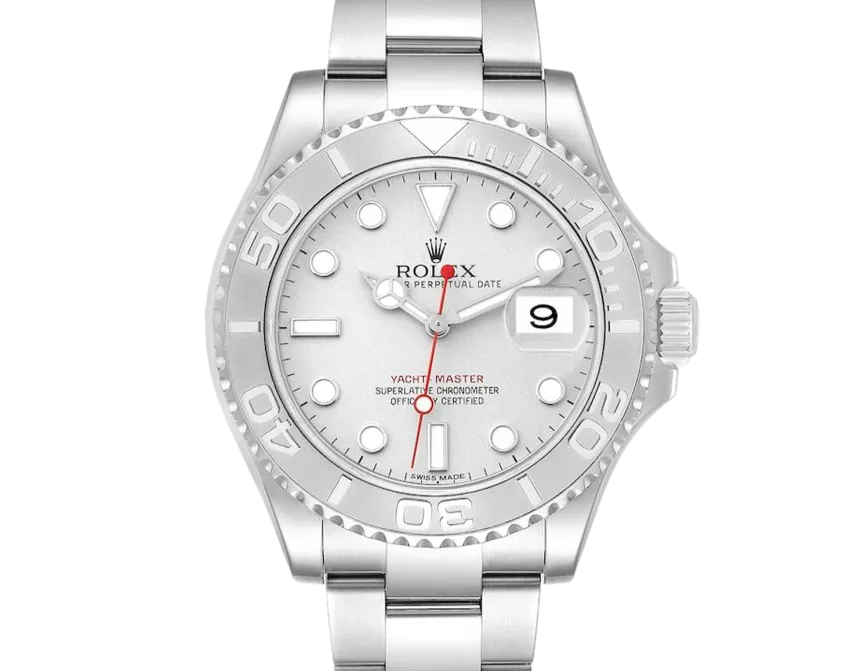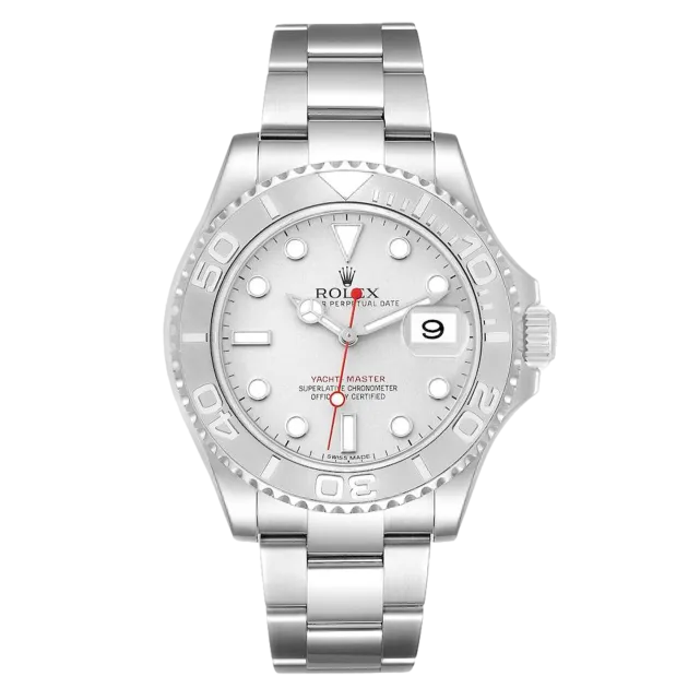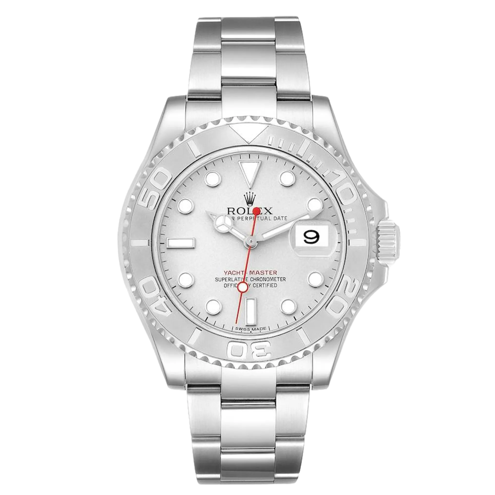 Rolex Yacht-Master 116622 Movement : Automatic Case size : 40mm Case material : Platinum & Steel Bracelet material : Steel (Oyster) Dial type : Platinum Water resistance : 100 Metres