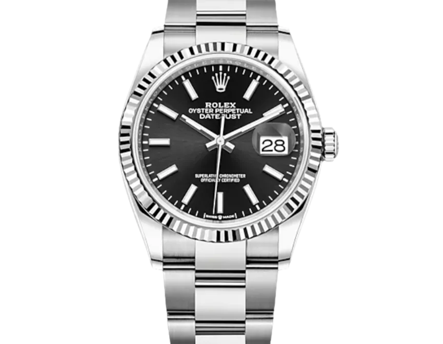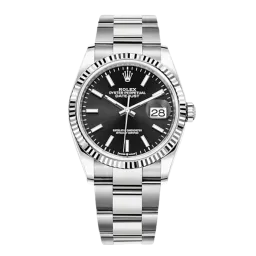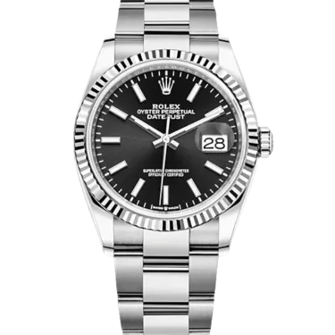 Rolex Datejust 126234 Mouvement : Automatique Taille du boîtier : 36 mm Matériau du boîtier : Acier et or blanc Matériau du bracelet : Acier (Oyster) Type de cadran : Noir Baton Étanchéité : 100 mètres