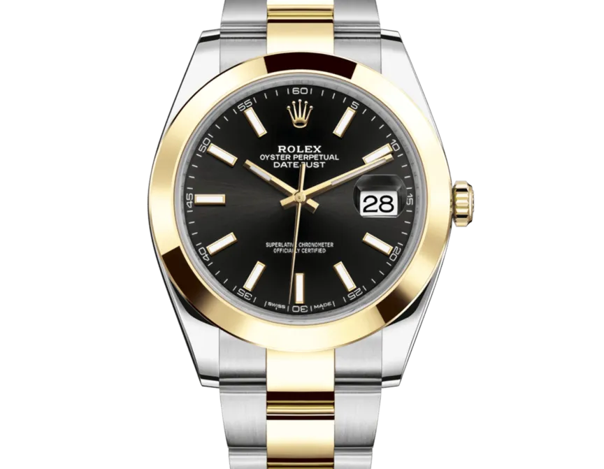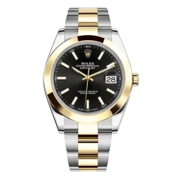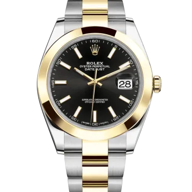 Rolex Datejust 41 126303 Mouvement : Automatique Taille du boîtier : 41 mm Matériau du boîtier : Acier et or jaune Matériau du bracelet : Acier et or jaune (Oyster) Type de cadran : Noir à index bâtons Étanchéité : 100 mètres